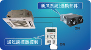 通(tōng)過遙控器(qì)控制(zhì)新風系統(選購部件)實現與空(kōng)調同步的換氣功能,有(yǒu)效改善室內(nèi)空(kōng)氣質量。